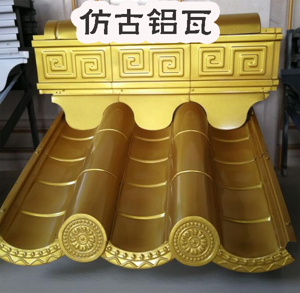 仿古鋁瓦是最近幾年開始流行的一種新型的材料瓦,為了響應國家的號召,節能環保的口號,仿古鋁瓦的直接不會產生很多污染物,不用燒制;直接通過高端精密設備滾壓成型,工藝復古,質感亮麗,原材料為鋁鎂錳合金材質,壽命達50-150年之間,根據厚度不同劃分壽命,價格這一塊在市場中所有的瓦中一直是最高的,它是專為特殊需求的仿古建筑屋面所定制的;比如一些博物館,仿古街道改造項目,寺院大殿,景區一些古建筑屋面,塔樓;對壽命要求比較高的建筑物,可按需求定制各種屋面配飾;