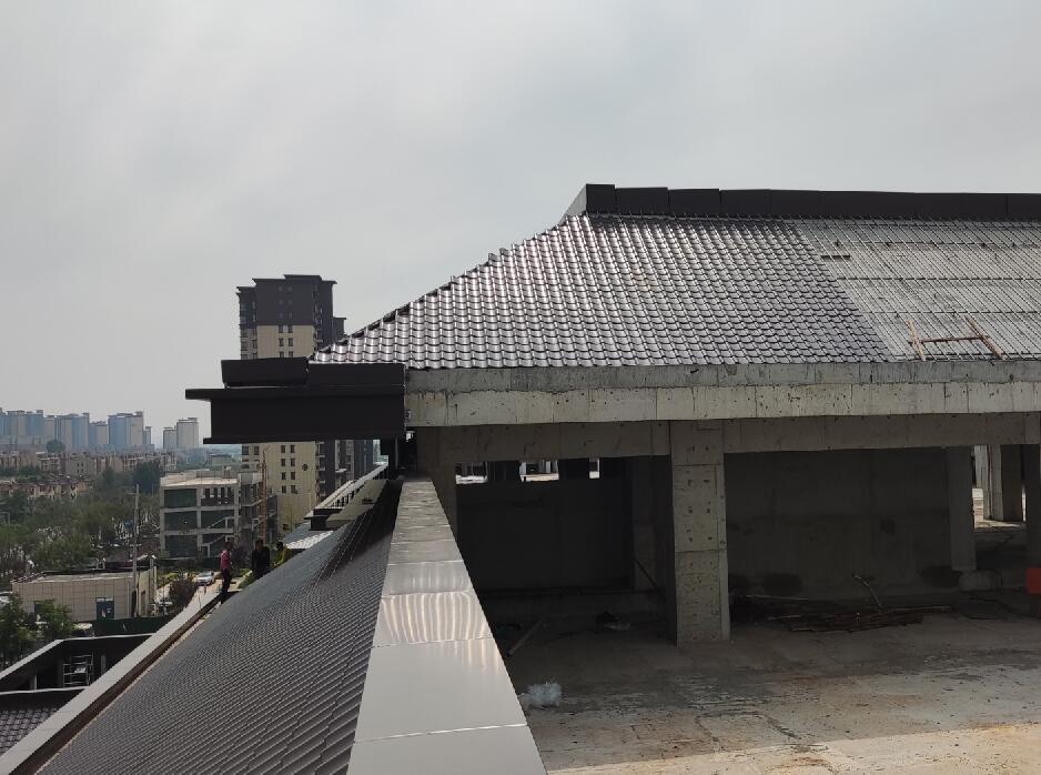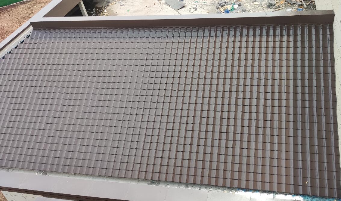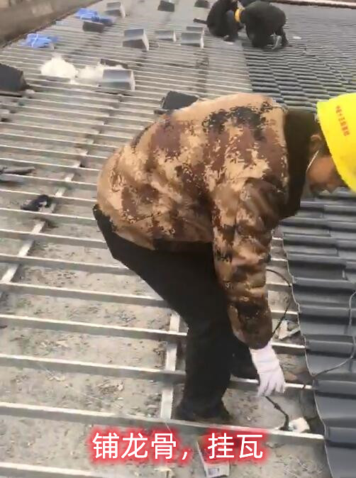 第三步:鋪設(shè)整個(gè)屋面的金屬日式和瓦