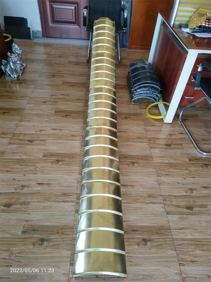 這款金屬小青瓦,采用黃銅制作而成,厚度1.5mm,花型為微派建筑風格;