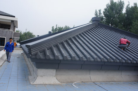 其次,再安裝順序上面的板瓦和筒瓦,以達到鋪滿整個屋面的目的。