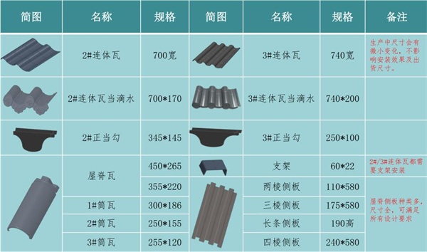 其實,大家看了款式基本差不多一樣,就是瓦型一個大一點,一個小 一點;下面的表就是2號瓦和3號瓦的尺寸;