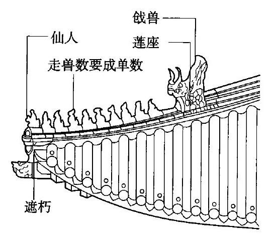 斜脊(垂脊,戧脊),垂獸(戧獸),小獸(走獸)