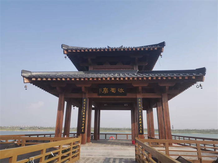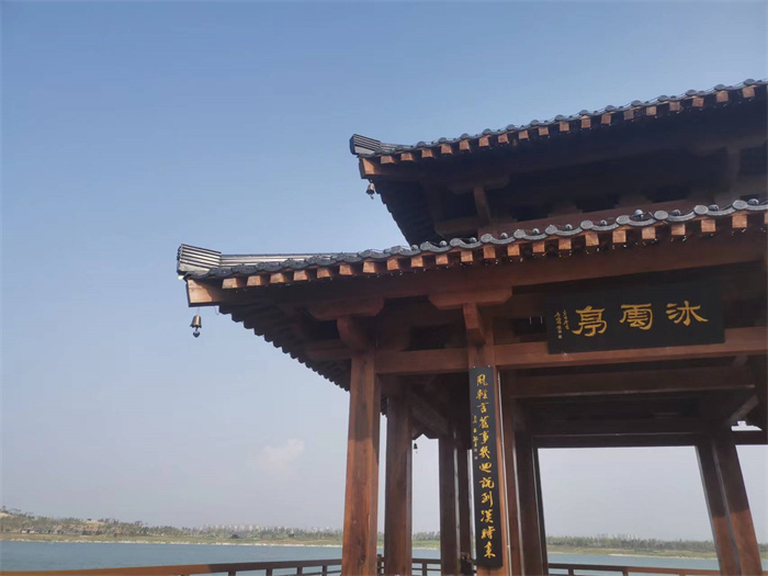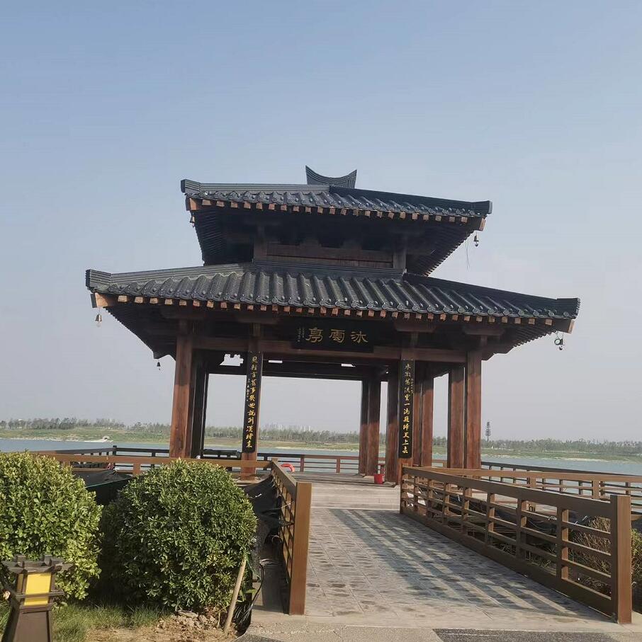 西安昆明池沐雲亭仿古瓦屋面工程安裝完成,主要采用東申瓦業的鋁合金仿古瓦,3號分體瓦,厚度1.2mm;風格:漢朝風格;下面為屋面完工效果圖;