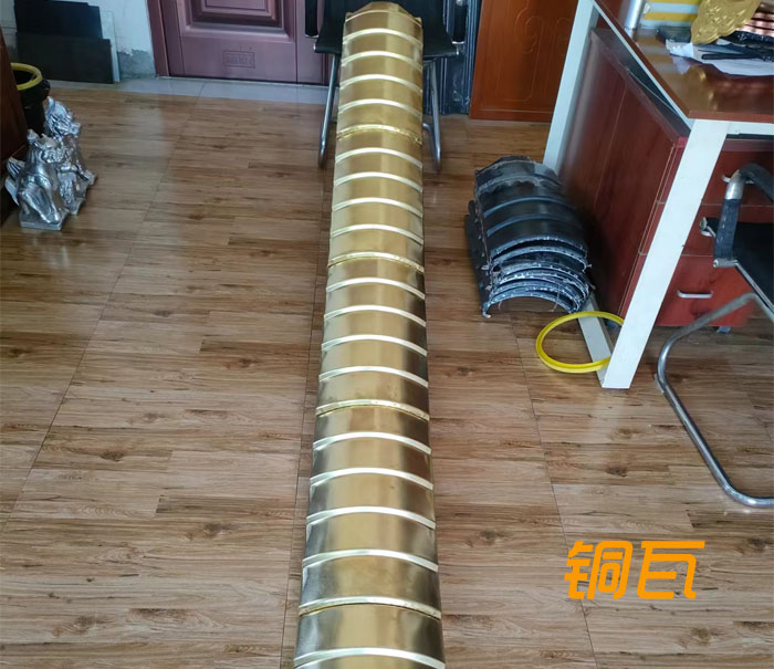 主要選用黃銅或者紫銅板,經過精密設備沖壓成瓦的形狀,表面噴涂氟碳漆或者聚酯漆;
