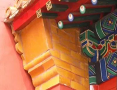 從使用材料上看,主要分為琉璃戧檐和青磚戧檐兩大類,呈現(xiàn)的基本形態(tài)為方形、扁方型或長方形。琉璃戧檐一般為定型燒制,有黃、綠或其它顏色,規(guī)格尺寸和顏色與建筑等級(jí)規(guī)制相關(guān)。一般規(guī)制是,黃琉璃戧檐等級(jí)高于綠琉璃戧檐,綠琉璃戧檐等級(jí)高于青磚戧檐。青磚戧檐一般用方磚砍制而成,有尺七、尺四、尺二戧檐等。一般,規(guī)格尺寸大的方磚戧檐等級(jí)要高于尺寸小的方磚戧檐,當(dāng)青磚戧檐需要增大尺寸時(shí),可以豎向拼接而成。