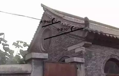 古代建筑的屋頂,多采用高屋脊、大坡度的設計?拷菁箖蓚鹊钠露瘸^60°,而在檐部的坡度不足30°,利用陡坡使水急下,再因慣性沖出檐外。