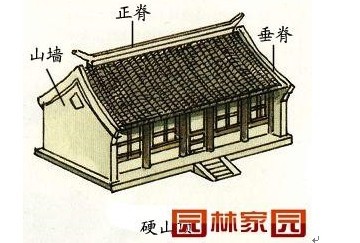 等級再次的屋頂主要有懸山頂(只有前后兩個坡面且左右兩端挑出山墻之外)仿古瓦廠。