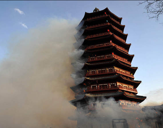 永定塔建設(shè)在園博園內(nèi)的鷹山之上,是遼代風(fēng)格、八角九層的仿古木塔,塔身雖然只有69米高,但由于建在山上,故可遙望北京城。火災(zāi)現(xiàn)場。