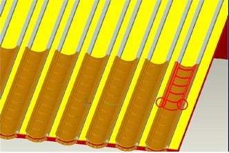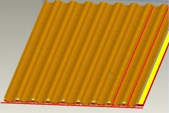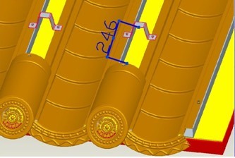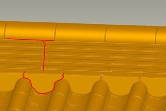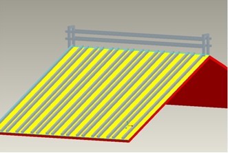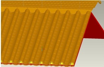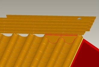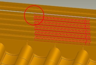 9.側(cè)連板最底面與筒瓦弧頂距離控制在40mm,側(cè)連板和屋脊龍骨用鉚釘鉚接適當(dāng)調(diào)節(jié)鉚接距離保證鉚接強(qiáng)度,放線安裝。