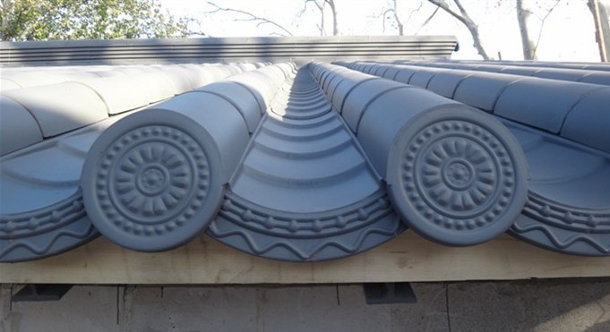 12.屋脊頭瓦筒瓦的安裝基本與瓦當(dāng)筒瓦基本相同。