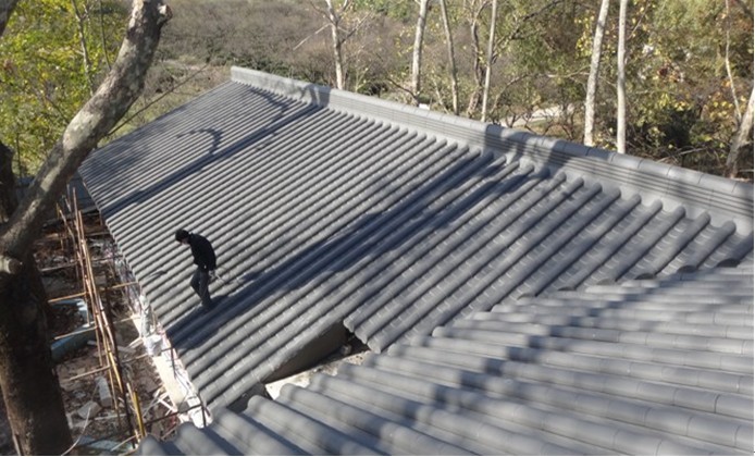 8. 保證所有滴水瓦檐在一條線上,筒瓦安裝也在一條線上,請放線安裝。